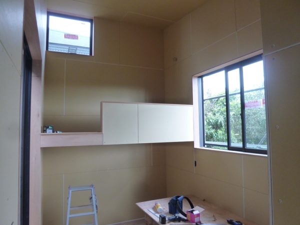 先日、打合せしていた「本棚」も完成。打合せ通り、1分(3mm)勝ちの納まり。流石です。